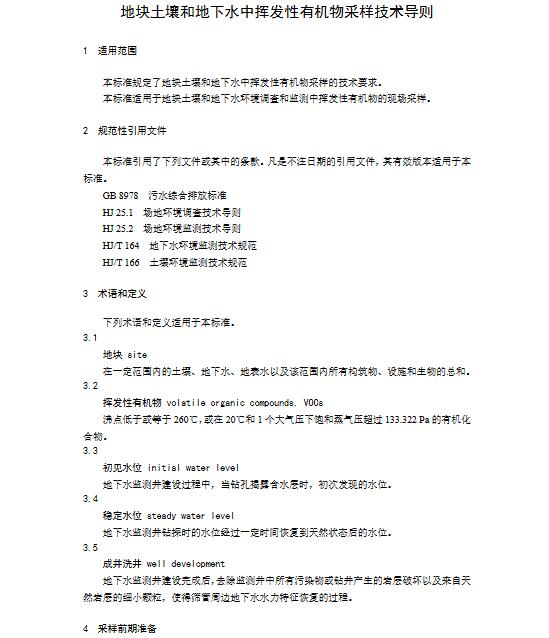 一、《地塊土壤和地下水中揮發性有機物采樣技術導則》(HJ 1019-2019);