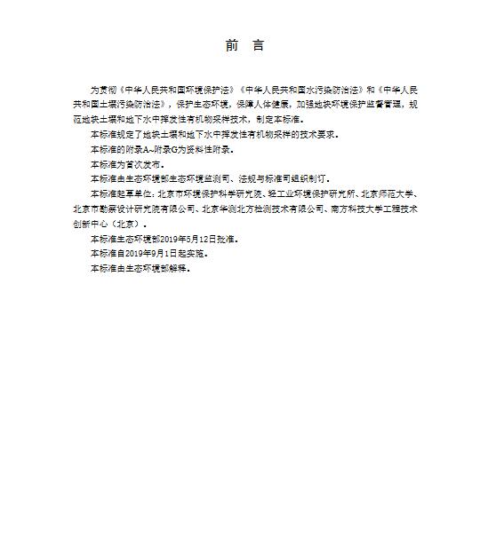 為貫徹《中華人民共和國環境保護法》,保護生態環境,保障人體健康,規范生態環境監測工作,現批準《地塊土壤和地下水中揮發性有機物采樣技術導則》等六項標準為國家環境保護標準,并予發布。