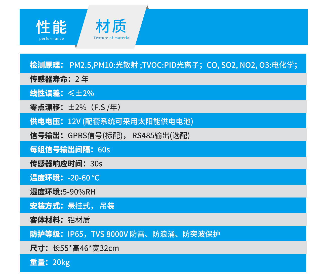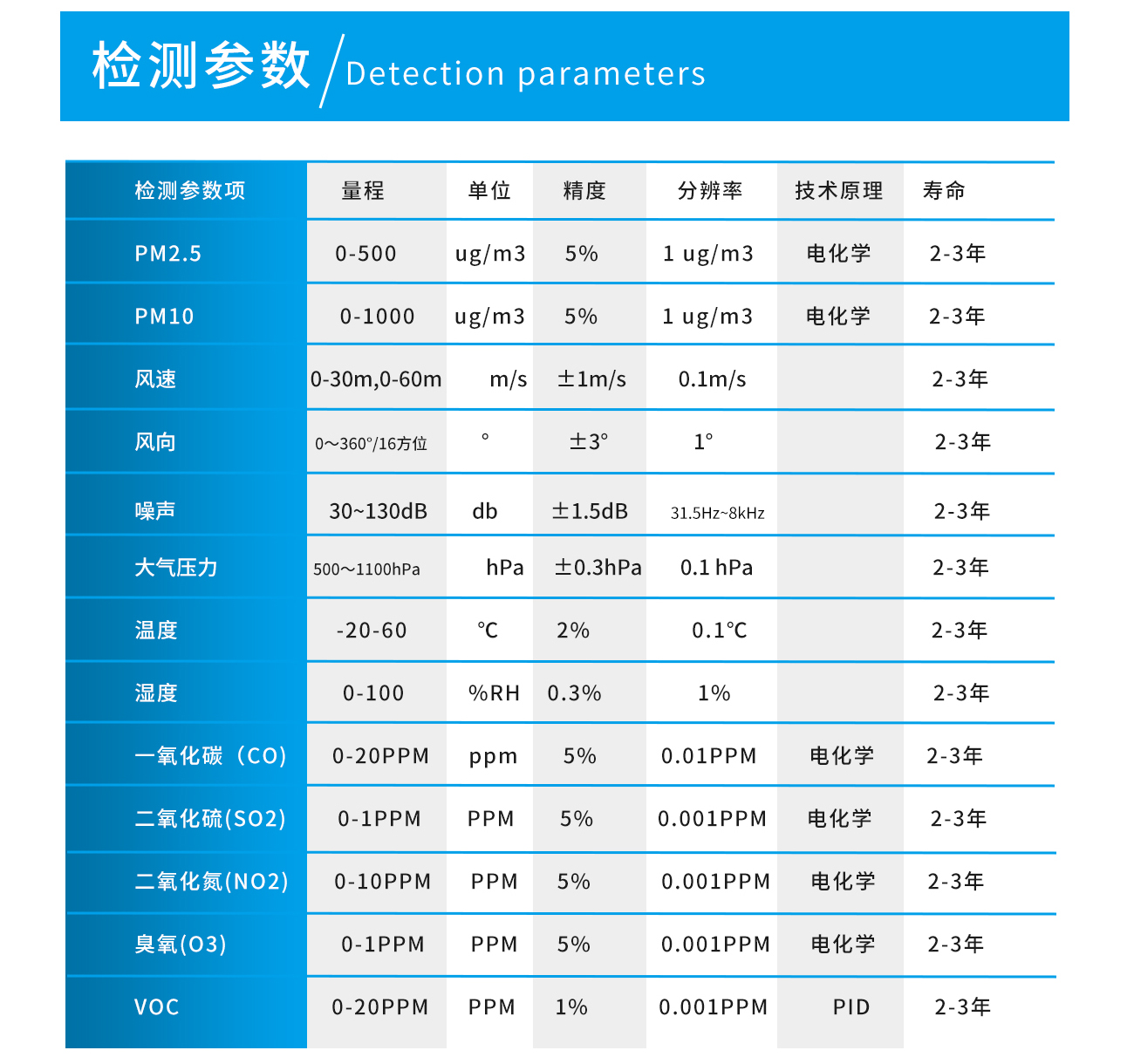風速參數:測量范圍:0-30m 0-60m(可選) 分辨率:0.1m/s 測量精度:±1m/s