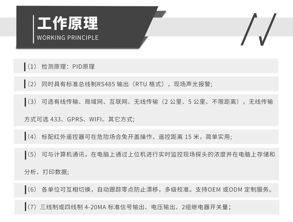 測量范圍 1~50000 檢測原理 催化燃燒、半導體、電化學、紅外、PID