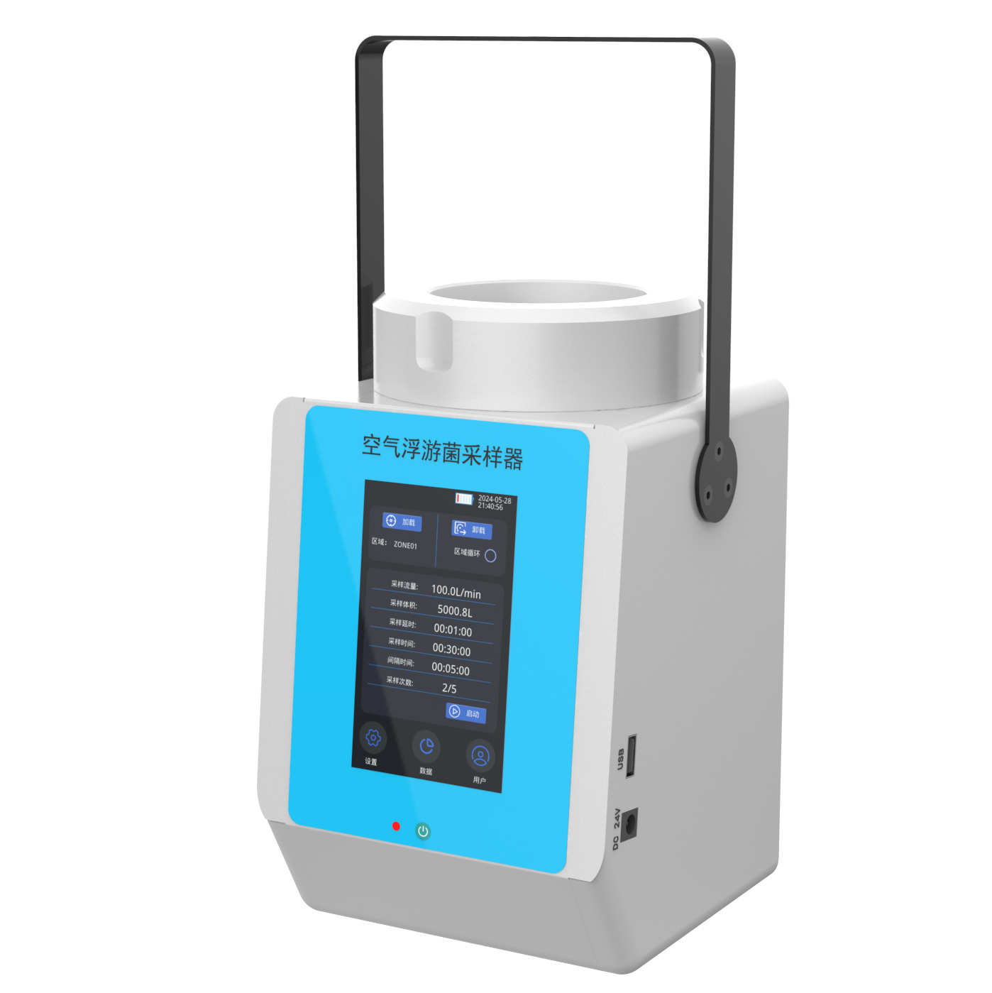 產品是一種多孔吸入式浮游菌采樣器。本儀器結構獨特新穎,分上下兩部分,上部分采集口和采樣座及氣泵,下部為控制器及電池。浮游菌采樣器采樣口和外殼采用航空鋁制造,表面閉孔處理,便于使用前的滅菌消毒。本儀器采樣量大,性能穩定,操作簡便,達到同類產品先水平,是各制藥廠、醫院、生物制品、食品加工、公共場所等的檢測部門理想的浮塵菌濃度采樣儀器。