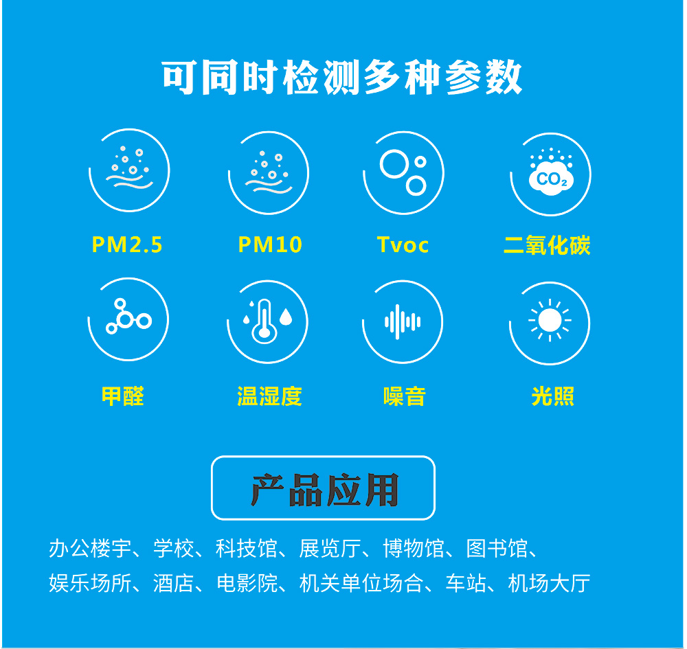 應用 : 辦公室、教室、酒店、車間、公共場所等環(huán)境監(jiān)測