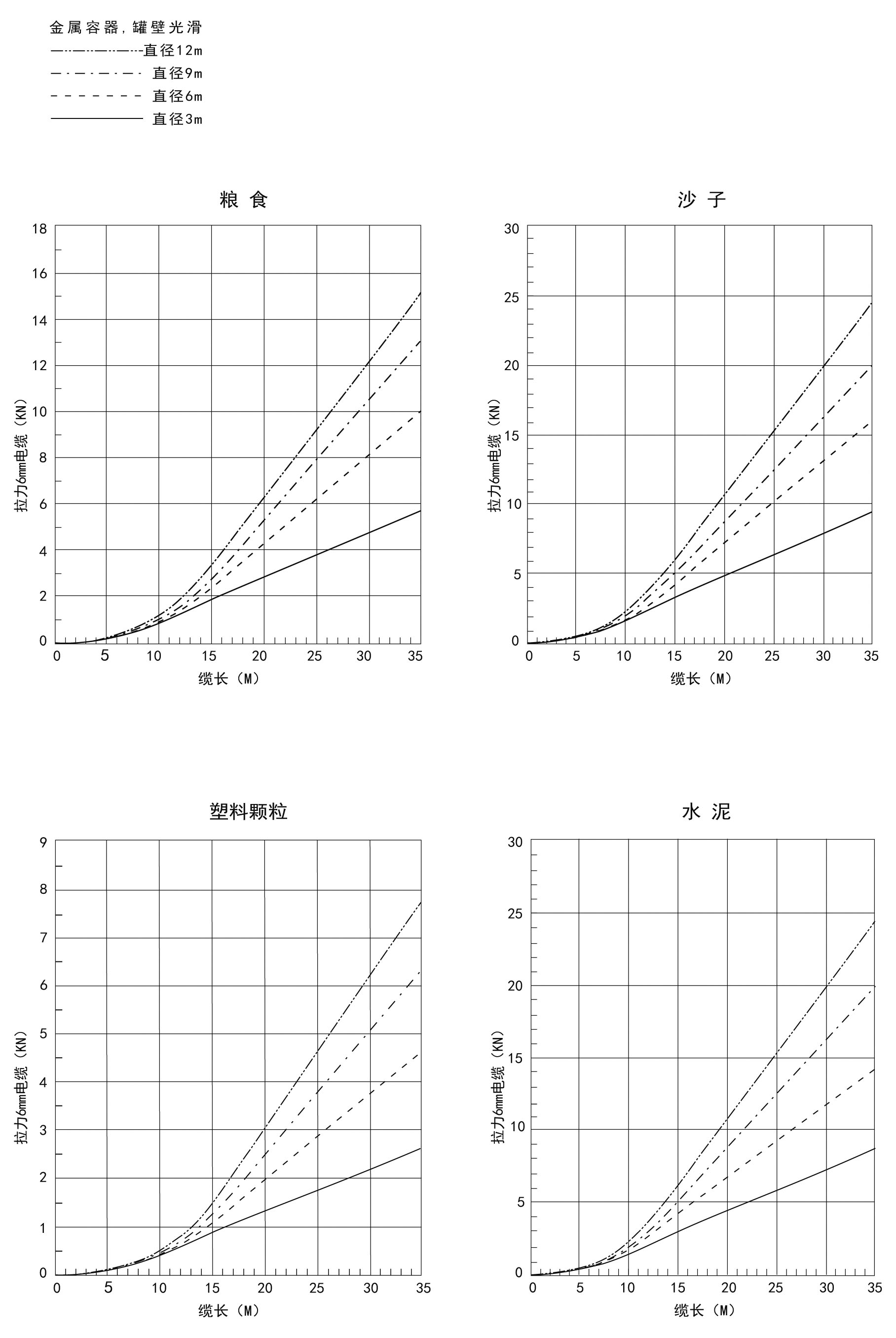 l 在測量固體介質的時候,拉力取決于容器直徑和物位,以下顯示的是一些典型介質產生的拉力。