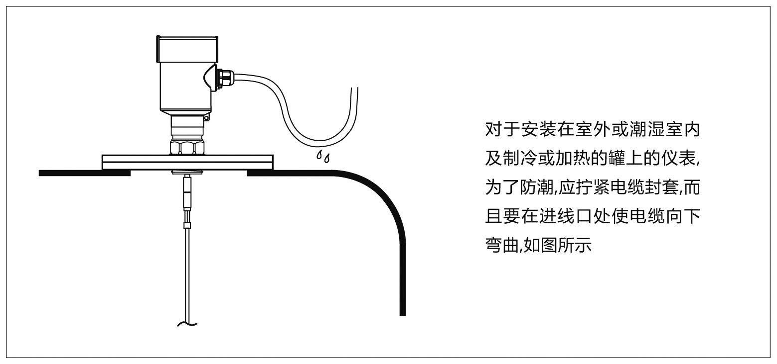 在整個量程范圍內確定纜或棒不要接觸到內部障礙物,因此安裝時應盡可能避開罐內設施,如:人梯、限位開關、加熱設備、支架等。另外需注意纜或棒不得與加料料流相交。
