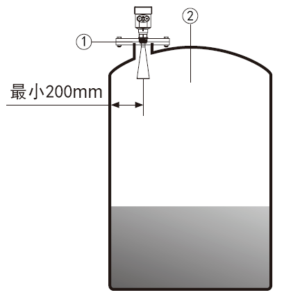 注:距離罐壁最小距離應(yīng)為200mm。注:①基準面 ②容器中央或?qū)ΨQ軸