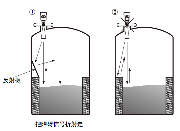 Ø 當罐中有障礙物影響測量時,要加裝反射板才能正常測量。
